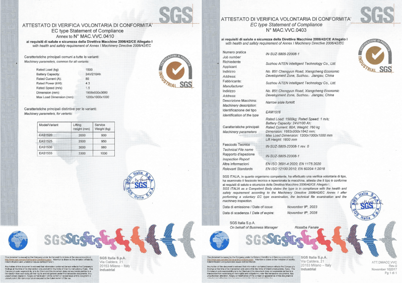 3. CE 标志(欧盟): 确保符合机械指令,强调对繁忙仓库等动态环境的风险评估,在这些环境中,叉车与行人和手动设备相互作用。为满足欧洲市场的法规要求,星空电竞产品经过严格审核,为包括 MP10、AM1516、AE15、AS15 和其他产品在内的 AGV 产品获得了欧盟 CE 证书。